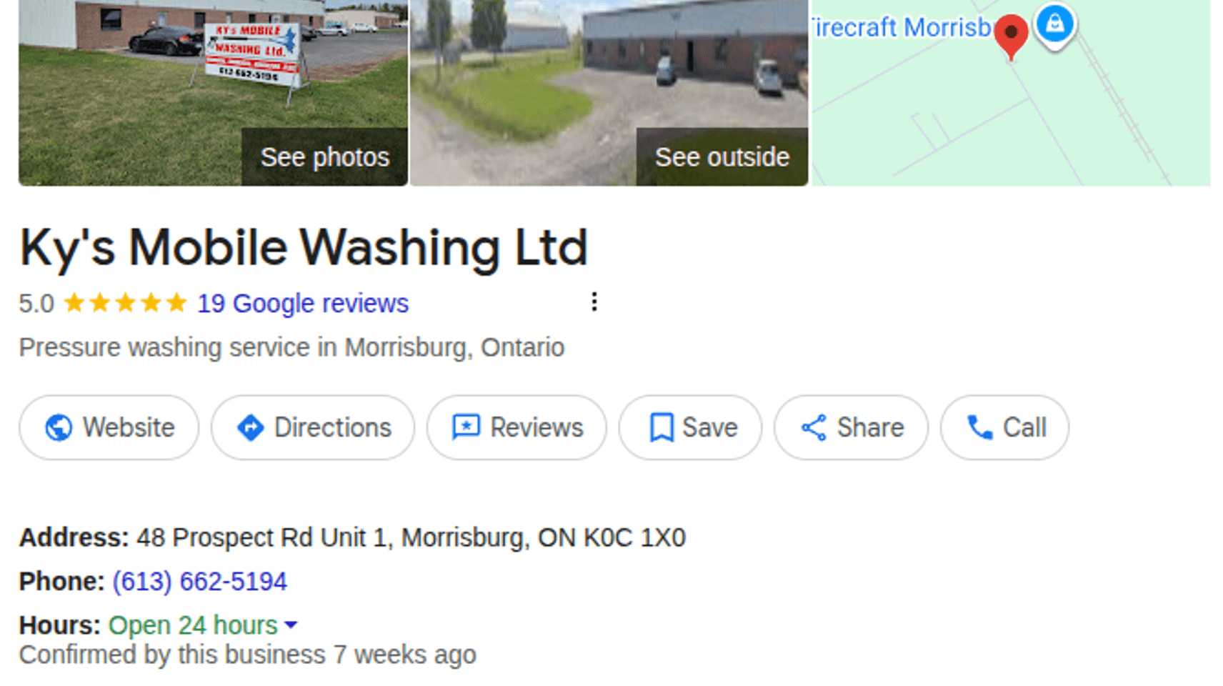 Kys Mobile Washing is a pressure washing company based in Morrisburg, ON. The owners had issues setting up their Google Business Profile (GBP), and their website needed some improvement. We helped them establish a strong online presence beyond Facebook by reinstating their GBP and developing a new, conversion-focused website. Designed to showcase their work and boost their visibility in local search results, the new website, combined with strategic signage placement by the owner and enhanced local SEO efforts, successfully drove traffic to their GBP and website, converting more leads into paying customers.